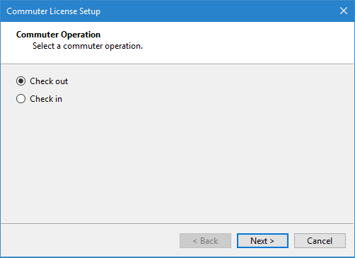 The Check Out step is displayed. This step is used to select the modules licenses you want to check out and the end date for the commuter license.