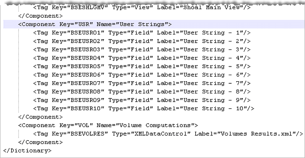 An XML file tag is used to include XML data in the publication, such as volume computation results.