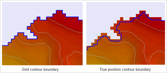 For an attribute band with true position data, contour boundaries can be created using either the true positions for the data, or the outer edges of the grid cells. In this case, True Position and Grid will both be available in the list.