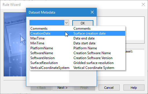 3. Click the metadata value hyperlink, select Technique of Sounding (TECSOU) from the list, and click OK.