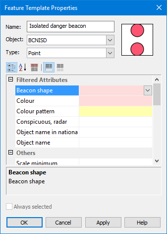 The Feature Template Properties dialog box is displayed.