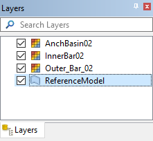 By default, the reference model layer is filtered to provide only the reference model template features. If you wish to work with additional reference model feature types, you will first need to add display layers for the required feature types. For example, if you need to work with point features, you will need to add a Points layer. The Add Layer command can be used to add additional display layers to the Layers window. See Filter for more information on adding layers.