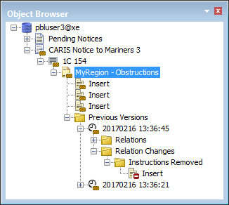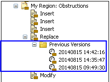 When this command is run, a Previous Versions folder is created in the Object Browser. This folder lists all the previous versions by time stamp in the format: yyyymmdd hh:mm:ss. An example is shown below.