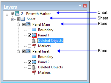 Paper charts are organized in a Chart/Sheet/Panel hierarchy.
