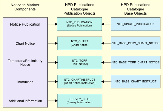 For example, the base object, NTC_BASE_PERM_CHART_NOTICE contains basic attributes that define notices. You can extend the base notice with your own notice object suitable to your publication. In this case, NTC_CHART is derived from NTC_BASE_PERM_CHART_NOTICE