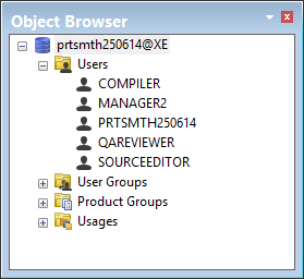 The User Manager is closed, The newly created users are listed in the Users branch in the Object Browser.