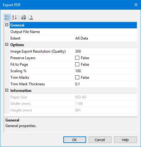 Extent | The area that is to be exported. Select from: • All Data to export the entire sheet. • Current View to export the area of that is currently displayed. • Export Area to set an area of the panel for export. |