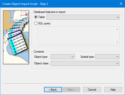 The Create Object Import Script - Step 2 Database dialog box is displayed.