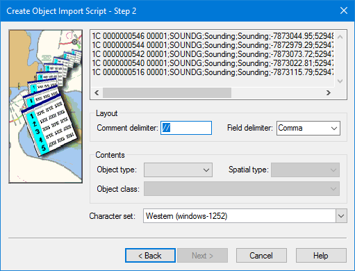 The Create Object Import Script - Step 2 dialog box is displayed.