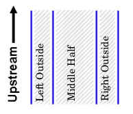 Up to twenty partitions can be created in each reach and each partition is named according to the number of partitions created. For example, if the division results in three partitions, they would be named: “Middle Half”, “Left Outside”, and “Right Outside”.