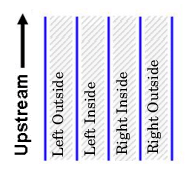 Up to twenty partitions can be created in each reach and each partition is named according to the number of partitions created. For example, if the division results in three partitions, they would be named: “Middle Half”, “Left Outside”, and “Right Outside”.