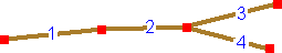 Lines 3 and 4 are both positioned at the end node of line 2.