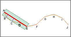 In this example, points B, C, and D all fall within the tolerance and are therefore deleted.