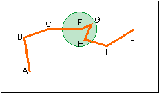 Points G and H fall within the circle so they are deleted. The circle is moved to point I.