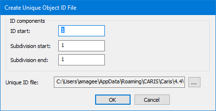 The feature object IDs used by a particular installation of CARIS are designed based on the settings specified in the wizard.