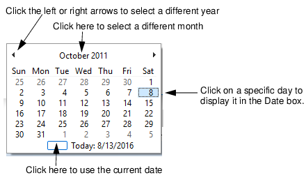 1. Change the date by clicking the calendar button in the Date field to open an interactive calendar.