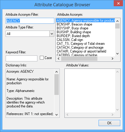 CARIS Easy View : CARIS : Commands : Attribute Catalogue Browser