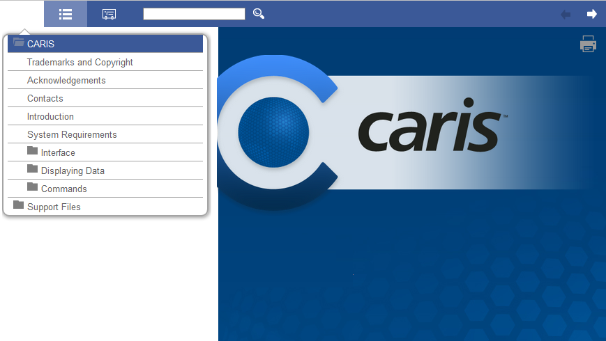 Display the help for the Teledyne CARIS application. Help displays in the default web browser of the computer.