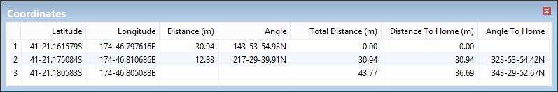 Angle to Home | The angle between the current point and the start point in a direct line. |