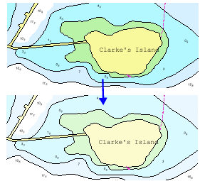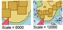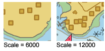 Symbolization Scale | Set a display scale for symbols and soundings for HPD and HOB layers. The default is Fixed, which means that symbols and soundings are drawn at a fixed size, even if the scale of the display changes. as in this example.
