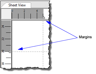 The Sheet window can display rulers. Rulers assist with positioning features in a chart. As you zoom into and out of a panel, rulers adjust to the zoom level. Units are in centimetres.