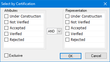 Select the status | Select one or more certification statuses using one of the following methods: To filter on attributes or representation only: • Select one or more items from the appropriate list. To filter on both status types: • Select one or more items from the Attributes list. • Select AND or OR. • Select one or more items from the Representation list |