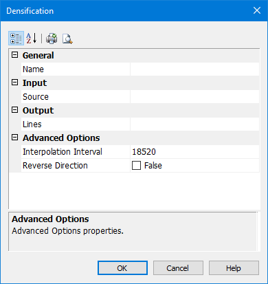 Reverse Direction | The line is densified based on the starting point and the direction in which it was digitized. Because the interval between added points restarts for each line segment, the location of the new points depends on the direction of the line. • False: The starting point of the line is not changed. • True: The starting point of the line is changed and the direction reversed. |
