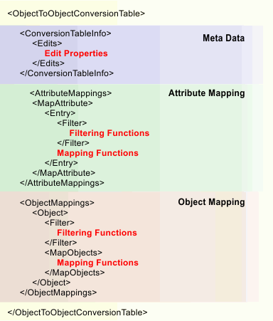 <ObjectToObjectConversionTable> is the root tag for all elements in the file.