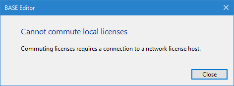 If a local license is being used to check in, the following error message will be displayed. See Network License for information on connecting to a network license.