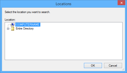The Locations dialog box will be displayed. From here, you can access all locations on your network that contain users.