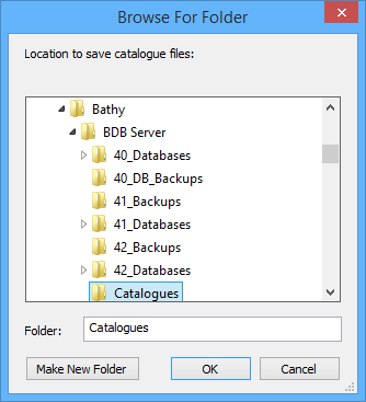 The names of these files will depend on the catalogue assigned to the database. Each file will also have the database name included as a prefix in the file name. For example, the Global_DB database, using the default BDB Server catalogue, would generate a file named "Global_DB_BathyServerPool.xml".