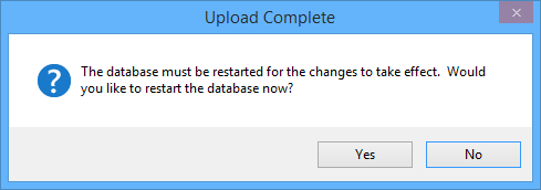 6. Click Yes to restart the database, or click No to restart it manually at a different time.