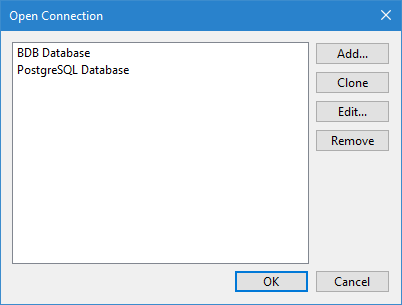 Connect to a database using the BASE Manager™ module in BASE Editor. When connecting to a database no data caching is used. Each connection made is a direct connection to the database selected.