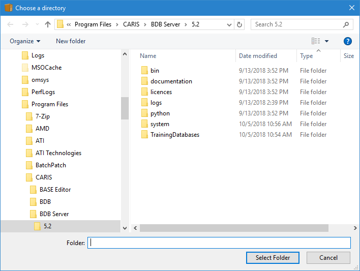 • Browse for Folder dialog box: