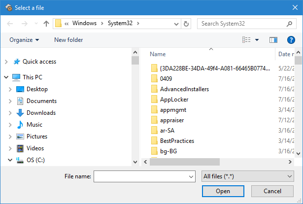 • Select a File dialog box: