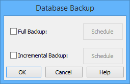 You can set the backup schedule options for both full and partial backups of a database. A full backup copies all files in the database, whereas an incremental backup only copies files that have changed since the last backup was performed.
