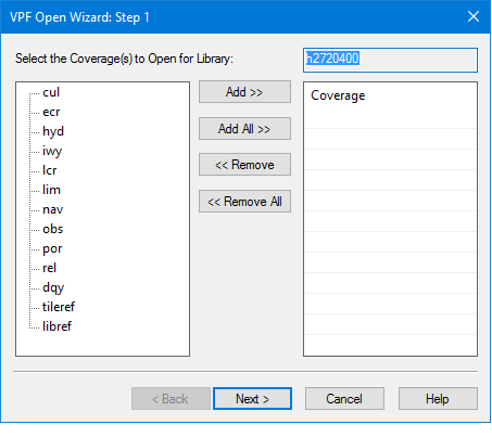 The list on the left contains all available coverages. The list on the right contains the coverages that will be opened.
