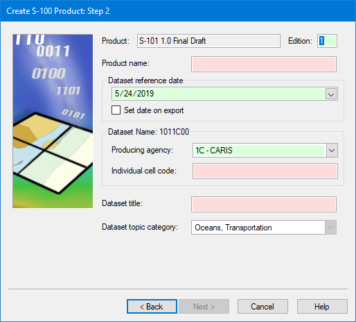 CARIS BASE Editor : S-57 Composer and S-100 : Create New Product Wizards : Create S-100 Product Wizard : Step 2: Product Metadata