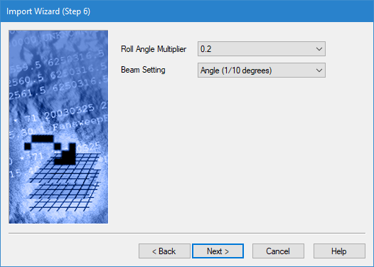 Roll Angle Multiplier | A numeric multiplier used to scale roll angle values. FAU files use either a multiplier of 0.2 or 0.1, as appropriate. After a multiplier has been applied, roll angle values are in units of degrees. The default value is 0.2. |