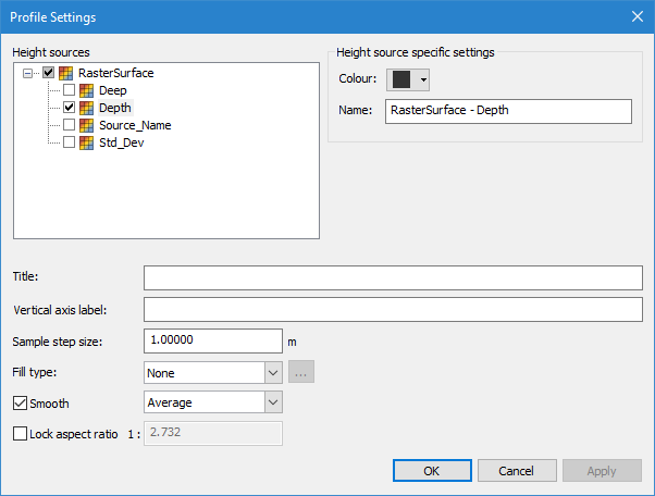 The colour of the profile line in the Profile window. A different colour can be selected for each profile line if multiple height sources are selected.
