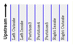 Up to twenty partitions can be created in each reach and each partition is named according to the number of partitions created. For example, if the division results in three partitions, they would be named: “Middle Half”, “Left Outside”, and “Right Outside”.