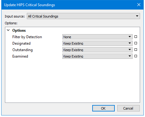 Updating the critical soundings uses the Update HIPS Critical Soundings dialog box: