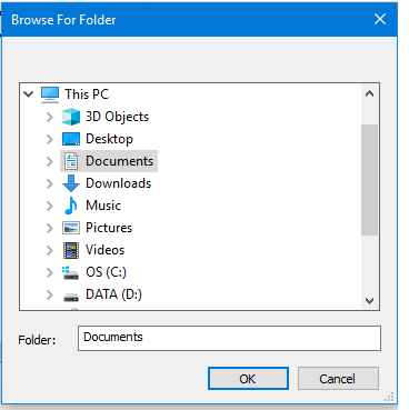 Folder name will appear in the Folder field.