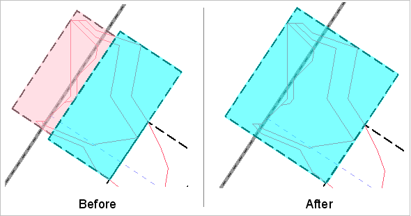 The shoal boxes are merged into a single box. If the results of the merge were not desireable, the Undo command can be used to reverse it, as long as the changes have not been saved. If the shoal boxes are reoriented, the merge will automatically be undone as it will no longer be applicable.