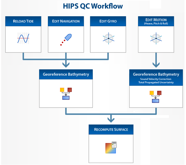 In the HIPS multibeam workflow, the auxiliary sensor data was not investigated prior to creating the surface. So at this point, you can use the surface to highlight problem areas that may exist.