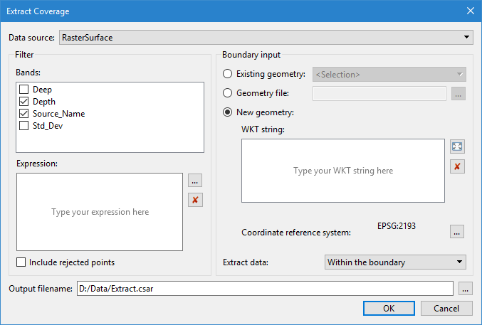 Extract Data | The type of extraction to be performed. • Within the boundary will extract only data that is within the specified geometry boundary. • Outside the boundary will extract only data that is outside the specified geometry boundary. | |