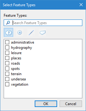 3. If the Select Feature Types dialog box is displayed, select the desired feature types.
