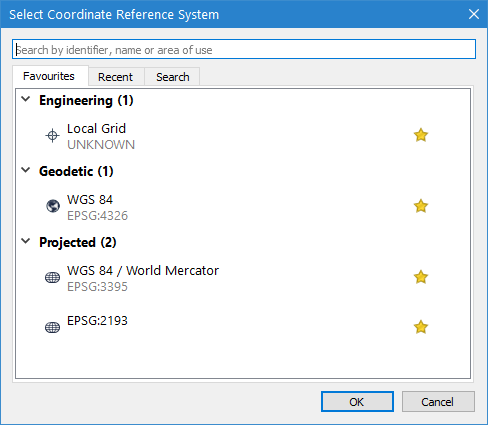For option 2: Select the coordinate system and ellipsoid that corresponds with the data in the selected file and click OK.