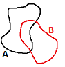 Each of the operators is explained below. The explanations include an example where A (black) is the source geometry and B (red) is the target feature.