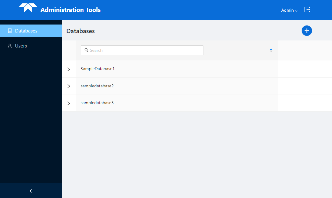 above the database list can be used to create a new database. To create a new database, the user must have the Database Manager user role.